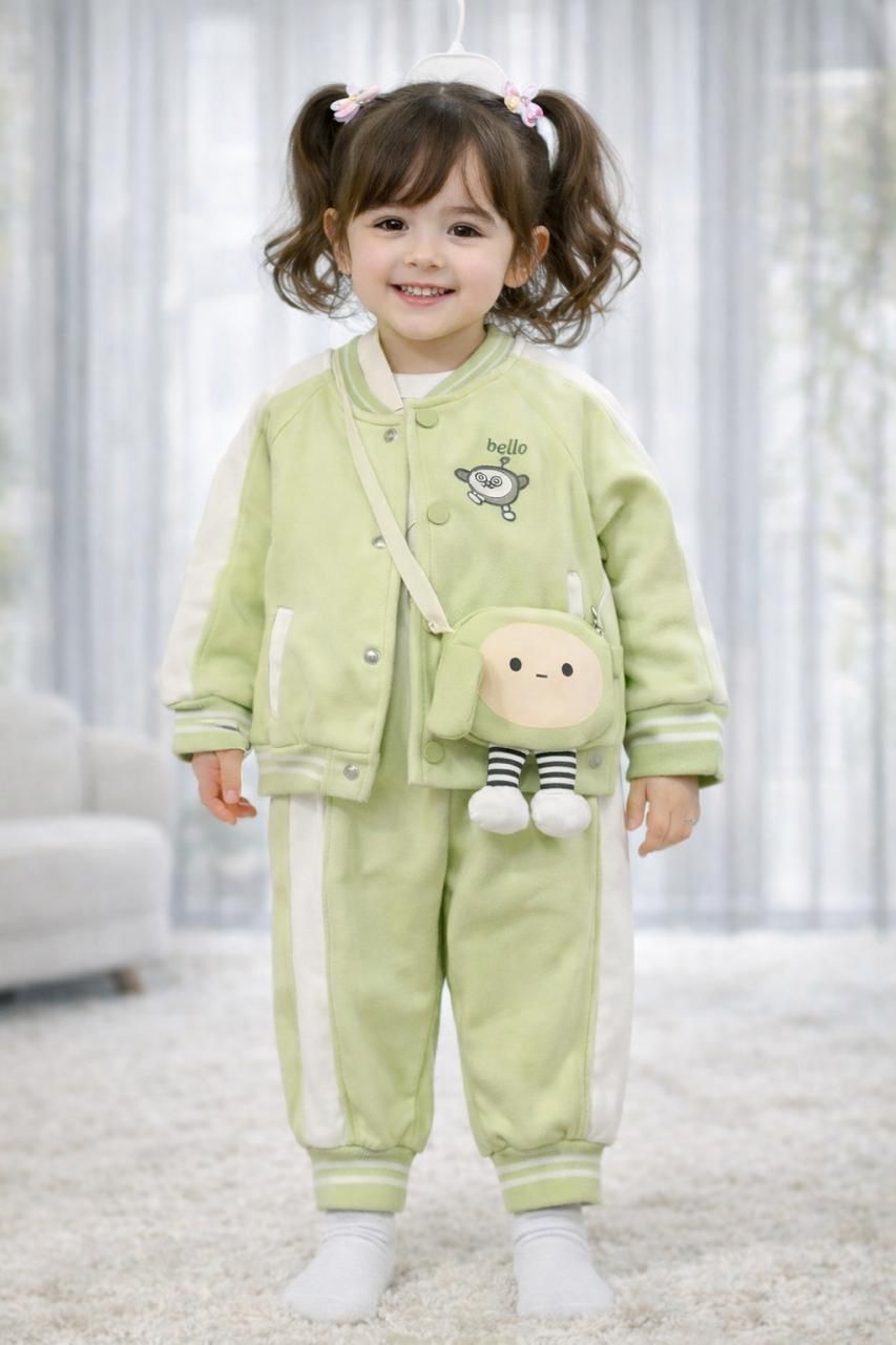 Kids Premium Co-ord Set with Sling Bag (Grey)