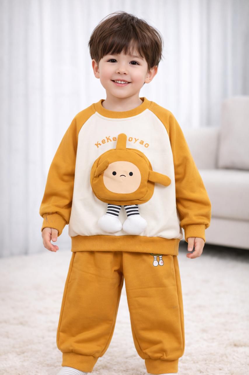 Kids 3 Piece Jacket Set – Go! Cartoon Print (Brown)